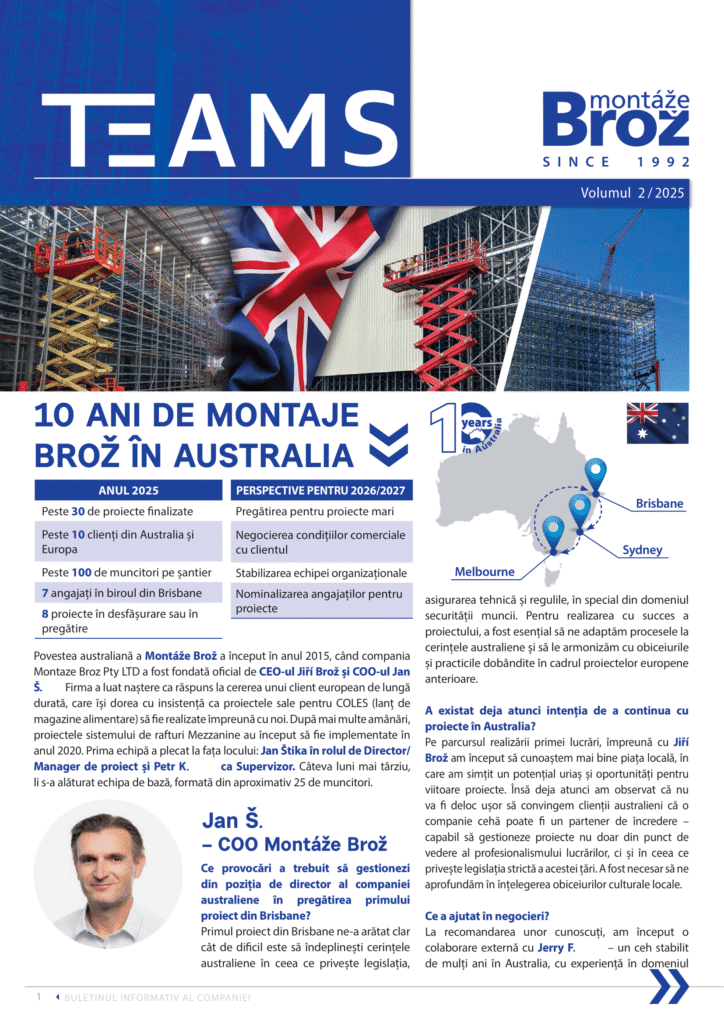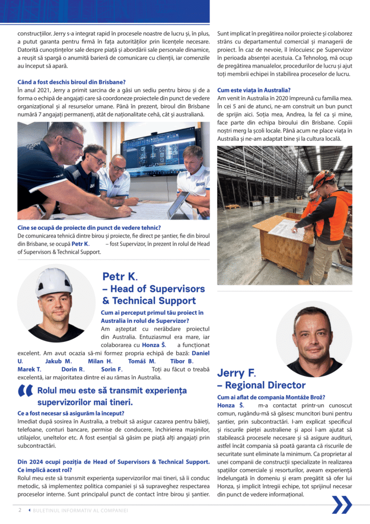 Petrecusem deja ceva timp pe șantiere în timp ce lucram la birou, apoi a venit 2022, pe care l-am petrecut aproape în întregime în SUA, și 2023 în Spania ca ofițer de șantier, cu o oarecare implicare în măsurători. Cel mai mult m-am bucurat de varietate, lucru de care mă bucur și acum aici, la birou. Legătura dintre toate culturile, faptul că avem echipamente unice de la Montáže în departamentul nostru, organizarea, creativitatea, dar și foi de calcul și puțină programare – câte puțin din toate. Mai presus de toate, a fost o călătorie nebună din momentul în care am început.